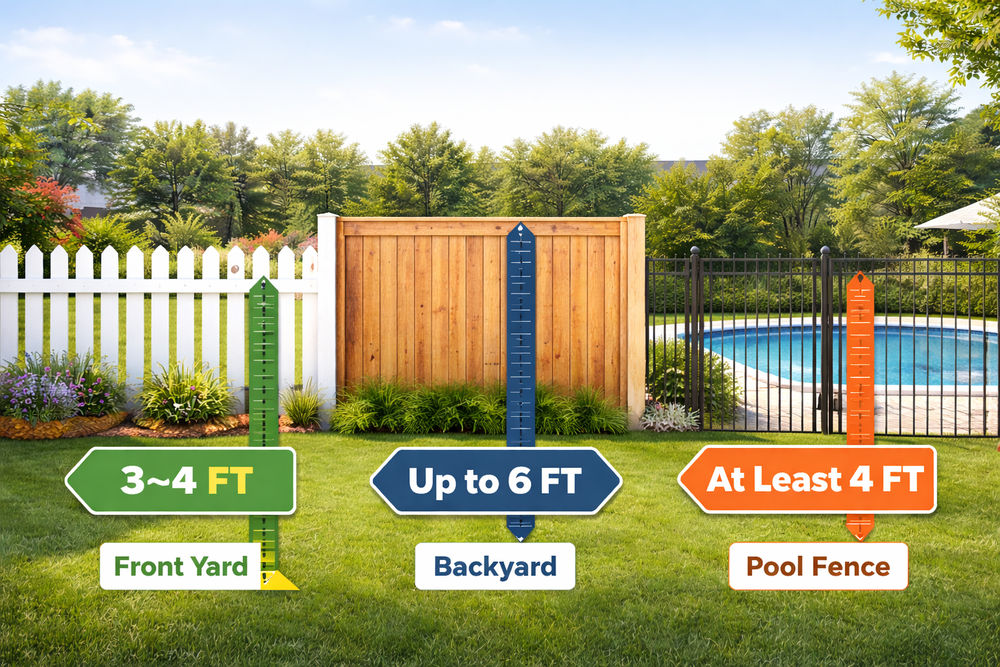 Because each town has its own zoning rules, it’s always recommended to check with your local building department or work with a professional fence contractor near you who understands the requirements.
